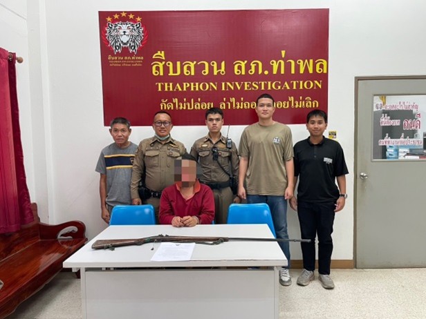 ผกก.สภ.ท่าพล พ.ต.ท.วิจัย ปานเงิน รอง ผกก.ป.สภ.ท่าพล พ.ต.ต.ธงชัย นิลเกิด สวป.สภ.ท่าพล ผู้ปฏิบัติประกอบด้วย ร.ต.ท.ณภัทร เพชรป้อ รอง.สว(ป.)ฯกับพวก และชุดสืบสวน สภ.ท่าพล ได้จับกุมผู้ต้องหา พ.ร.บ.อาวุธปืนฯ (ปืนแก๊ปยาว ) นำส่งพนักงานสอบสวน ดำเนินคดี