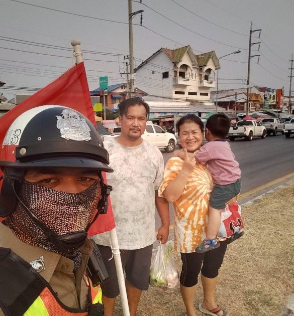 ด.ต.ศักรินทร์ เงินเจริญ ผบ.หมู่ (ป.) สภ.ท่าพลสายตรวจจราจร พร้อมเจ้าหน้าที่ อปพร.ท่าพล